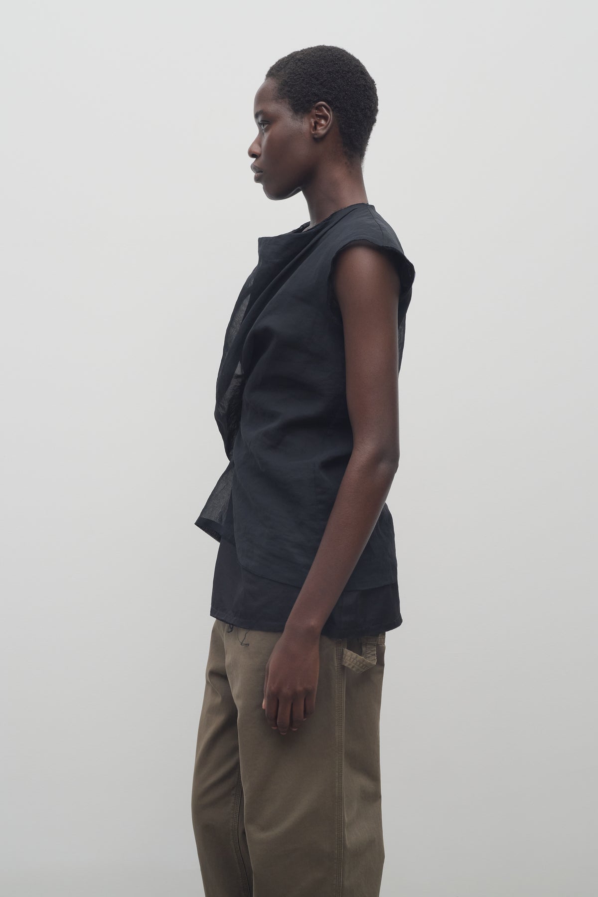 Chemise boutonnée ajustée en organza de coton vaporeux. Ourlet droit et patte de boutonnage apparente sur le devant.