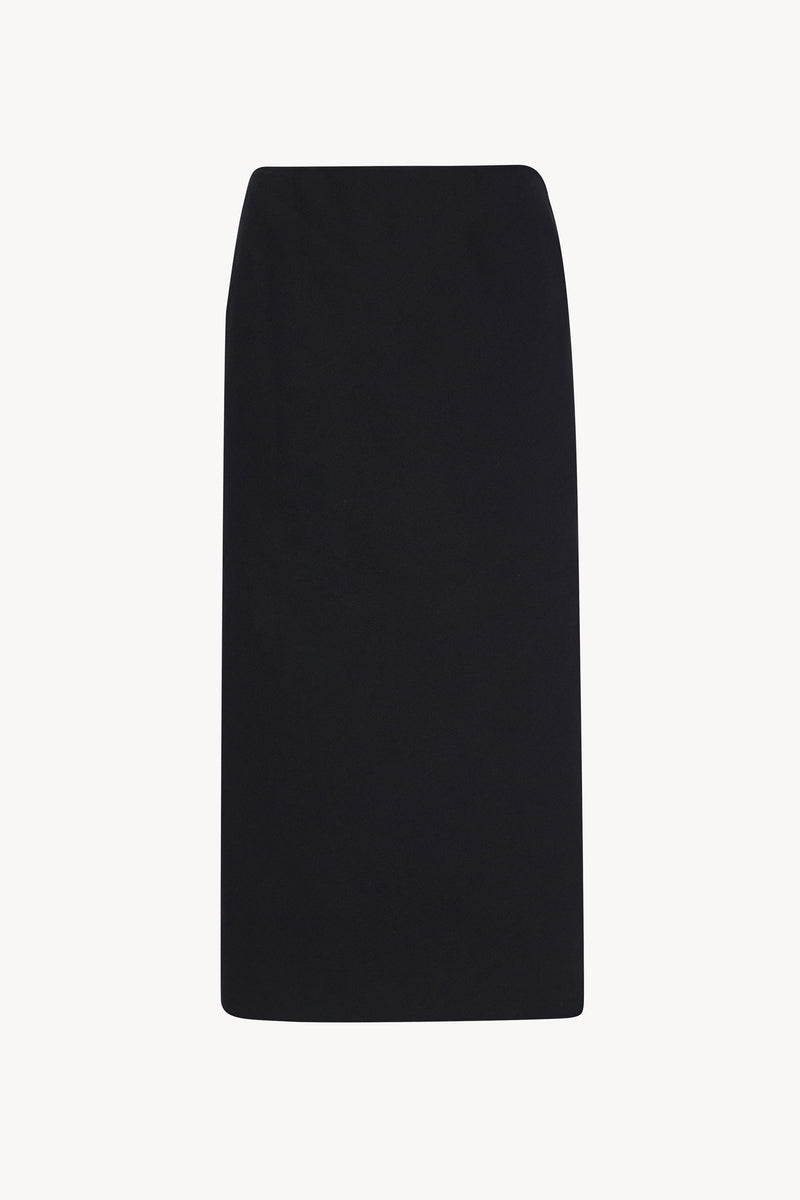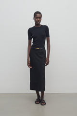 Jupe droite longueur cheville en laine texturée avec fente à l'arrière et fermeture éclair au milieu du dos.